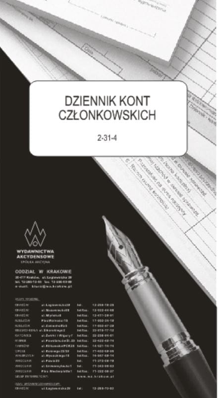 2-31-4 Dziennik kont członkowskich, format 223x420, blok 80 kartek, druk dwustronny identyczny, papier offsetowy