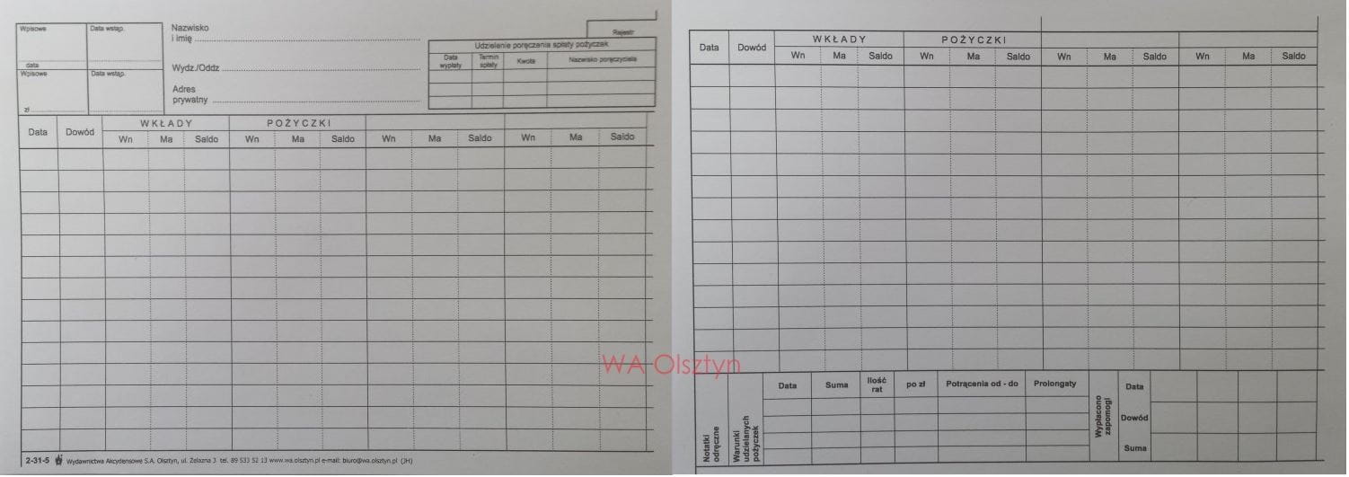 2-31-5a Dziennik kont członkowskich, karton, format A5, sztuki, druk dwustronny odmienny