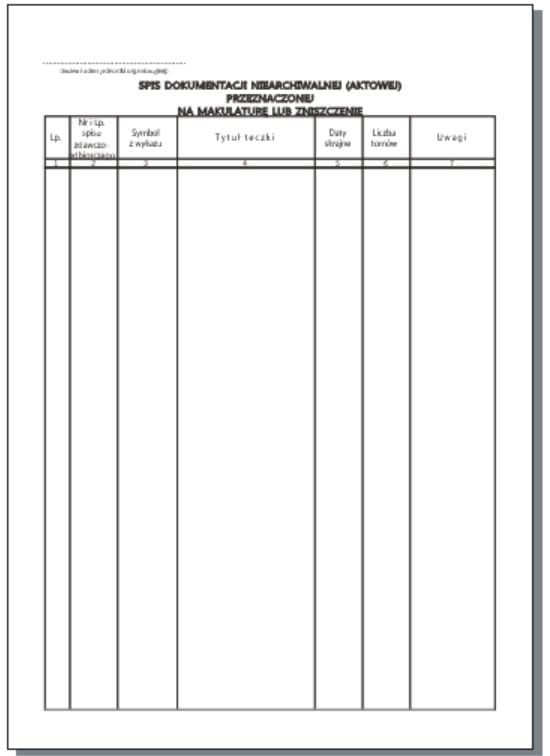 A-33a Spis dokumentacji niearchiwalnej (aktowej),