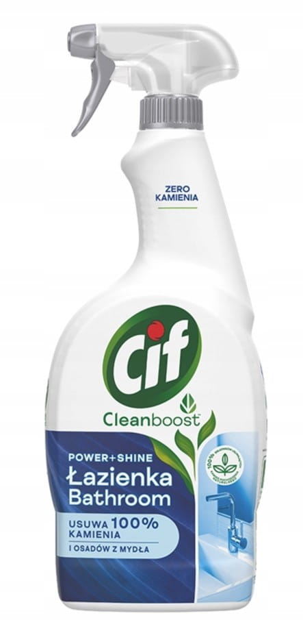Cif spray Przeciw Kamieniowi zawiera Turbo Formułę, która: - usuwa do 100% osadu z kamienia - przywraca naturalny połysk czyszczonym powierzchniom - nie pozostawia smug.