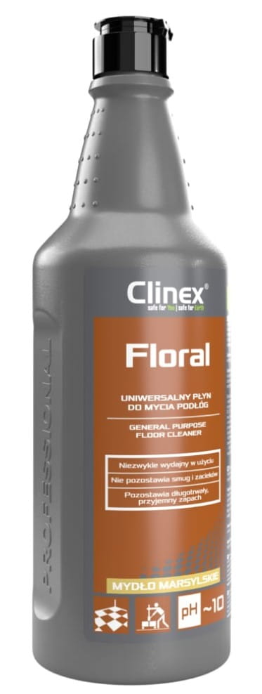 Clinex Floral Mydło Marsylskie - 1 litr, uniwersalny płyn do mycia podłóg, niezwykle wydajny, nie pozostawia smug i zacieków, pozostawia długotrwały, przyjemny zapach. Posiada Atest PZH