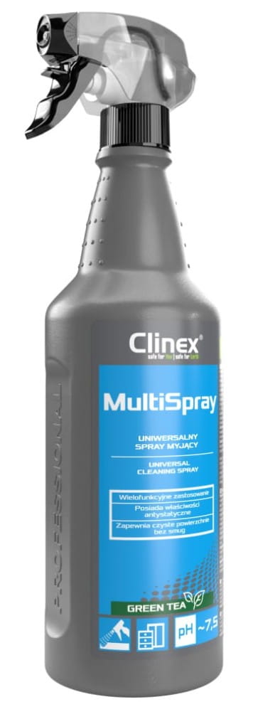 Clinex Multi Spray – Green Tea - 1 litr, uniwersalny spray myjący, wielofunkcyjne zastosowanie, posiada właściwości antystatyczne, zapewnia czyste powierzchnie bez smug
