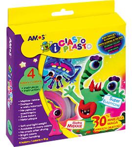 Ciastolina AMOS IC18P4S 4 kolory po 18 gramów, masa plastyczna przeznaczona dla dzieci powyżej 4 lat, łatwo poddaje się modelowaniu, dostępna w żywych kolorach, które mogą być dowolnie mieszane, miękka i lekka, nawet po wyschnięciu, nie brudzi rąk i powie