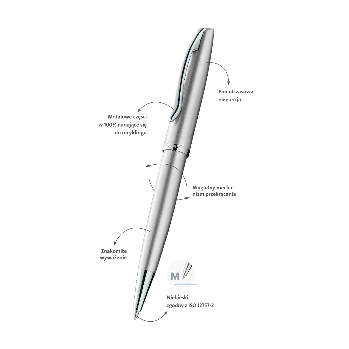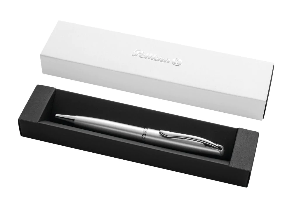 Długopis Jazz Noble, silver,, lakierowana górna i dolna część doskonale współgra z chromowanym klipsem, ponadczasowa elegancja, przyjemny dotyk i możliwość płynnego pisania, niebieski tusz.