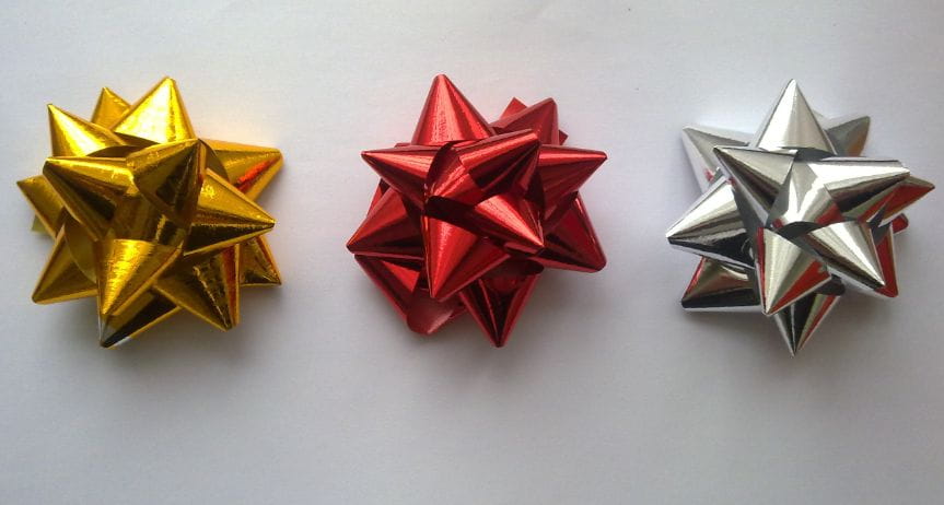 Kokardka A-24 w kształcie gwiazdki, rozmiar duży ok. 8 cm, metaliczna, różne kolory