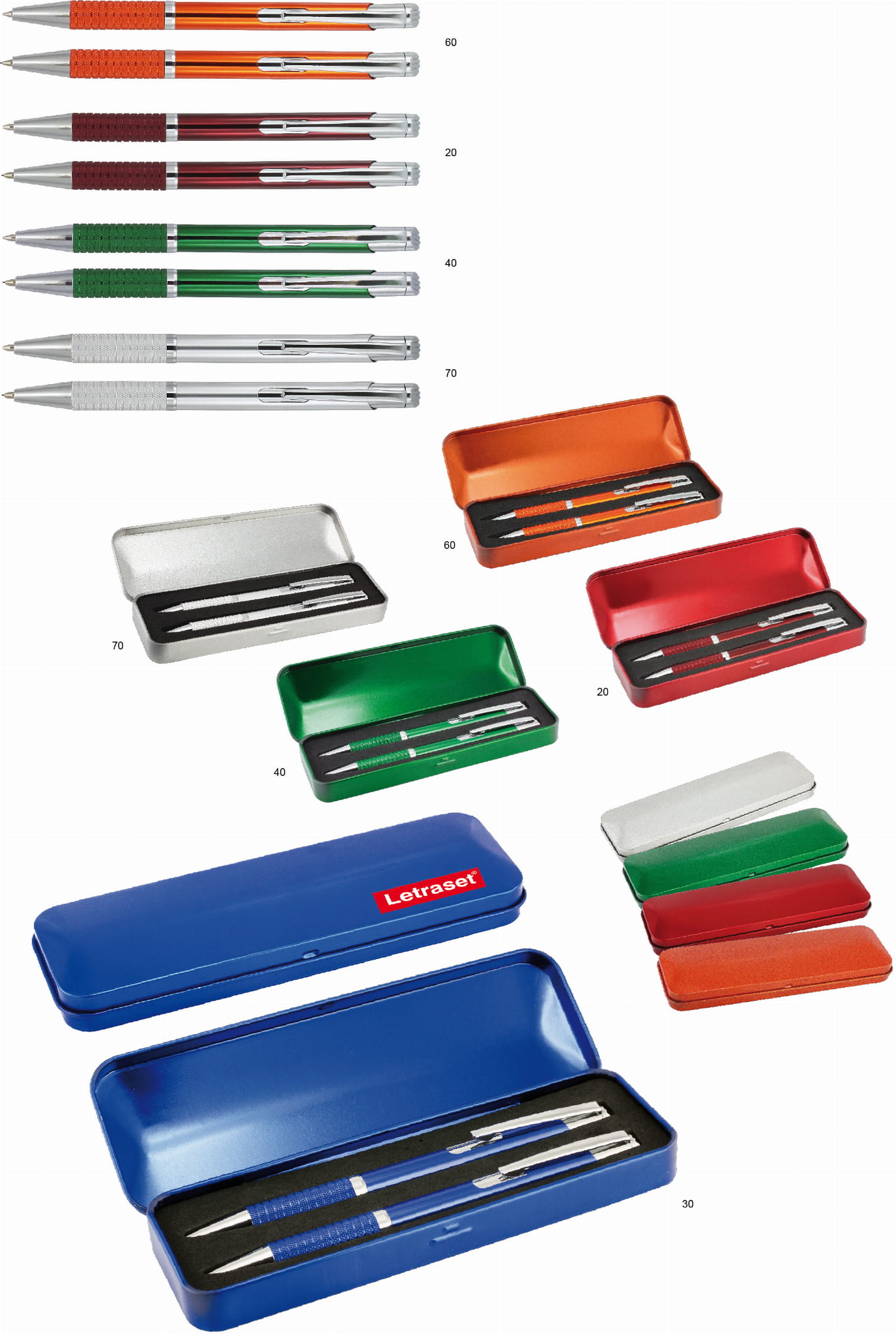 Komplet piśmienny MPM ADAT A10.2893 długopis + ołówek w metalowym kolorowym etui, nadaje się do nadruku tamponem lub laserem, dostępne kolory: pomarańczowy, czerwony, zielony, srebrny i niebieski.