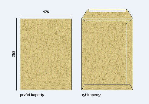 Koperta szara w formacie B-5 (176x250 mm), zaklejana na mokro NK.