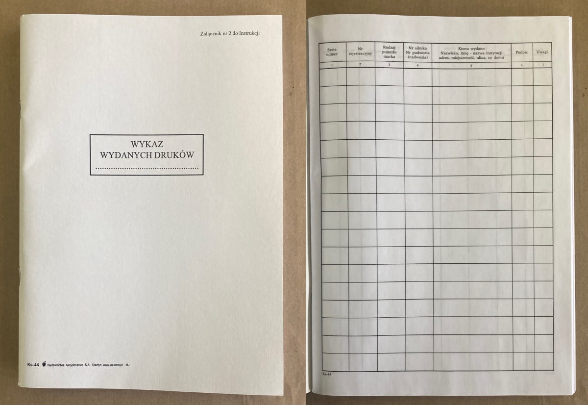 Ks-44 Wykaz wydanych druków