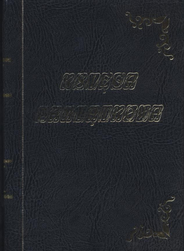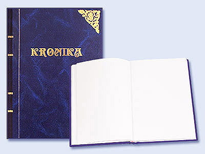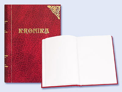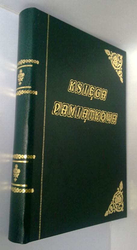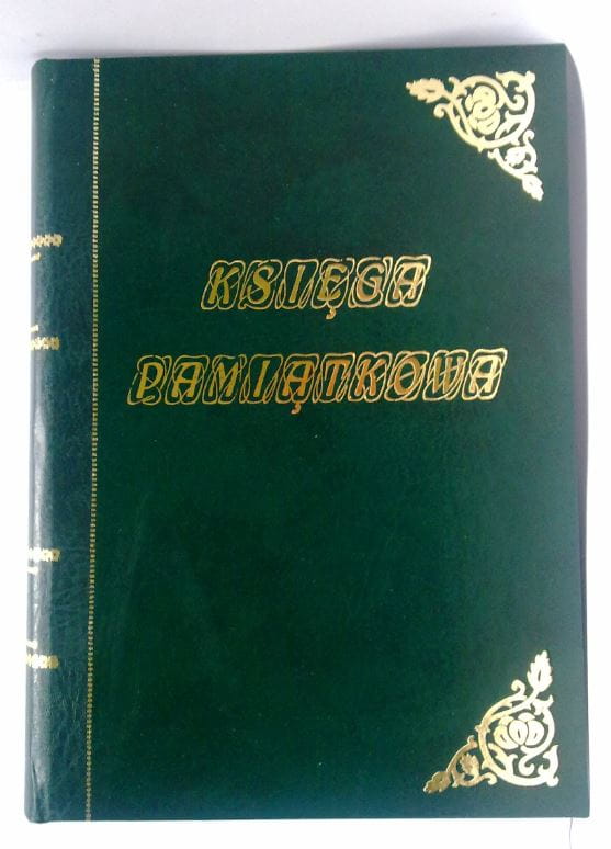 Księga Pamiątkowa w eleganckiej oprawie introligatorskiej, szyta, z ozdobnym napisem "Księga Pamiątkowa", wewnątrz 200 białych kartek, w formacie A3, układ pionowy, dostępna w kolorze: czarnym, bordowym, granatowym i zielonym.
