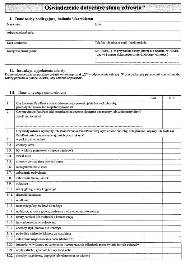 L-10 Oświadczenie dotyczące stanu zdrowia osób ubiegających się o uprawnienia do kierowania pojazdami, format A4, druk dwustronny odmienny, papier offsetowy.