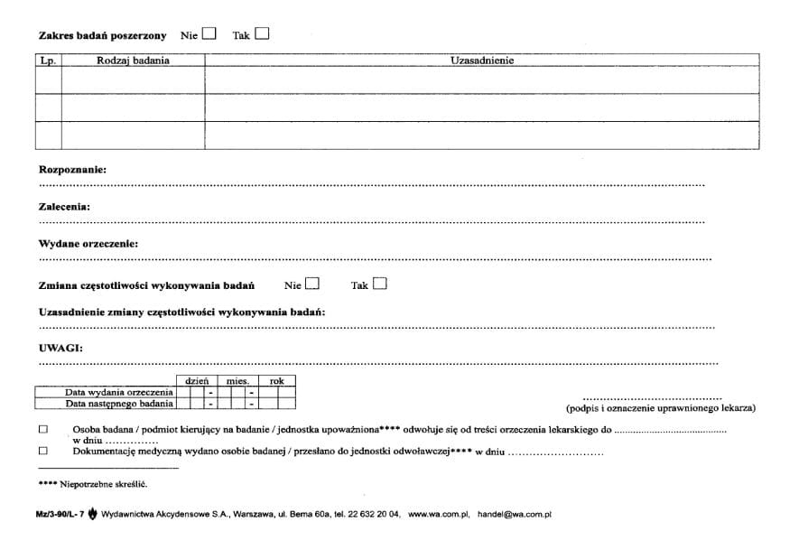 L-7/2022 Karta badania lekarskiego dla kierowców format A5 (6 stron A5), druk dwustronny odmienny, papier offsetowy, Rozp.Min. Zdr. z dn.5 grudnia 2022r. Dz.U. z 2022r. poz. 2503.
