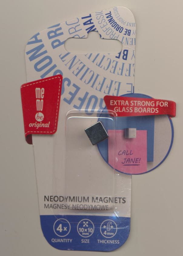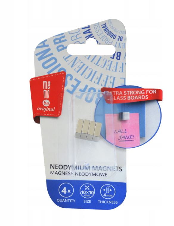 Extra silne magnesy do tablic szklanych 4 sztuki, neodymowe. Rozmiar: 10x10x4 mm Symbol: MM001-01