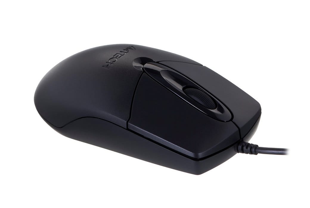 Mysz optyczna A4 TECH OP-720, biurowa, uniwersalna, o rozdzielczości do 1200 DPI, z trzema przyciskami w tym jednum w rolce, dla prawo- i leworęcznych, port USB, czarna