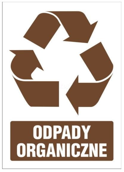 Naklejka - ODPADY ORGANICZNE, przeznaczona do przyklejenia na pojemnik z odpadami dla wskazania miejsca gromadzenia odpadów danego rodzaju, rozmiar 150 x 210 mm, z folii samoprzylepnej PCV, można stosować na zewnątrz - odporne na działanie warunków atmosf