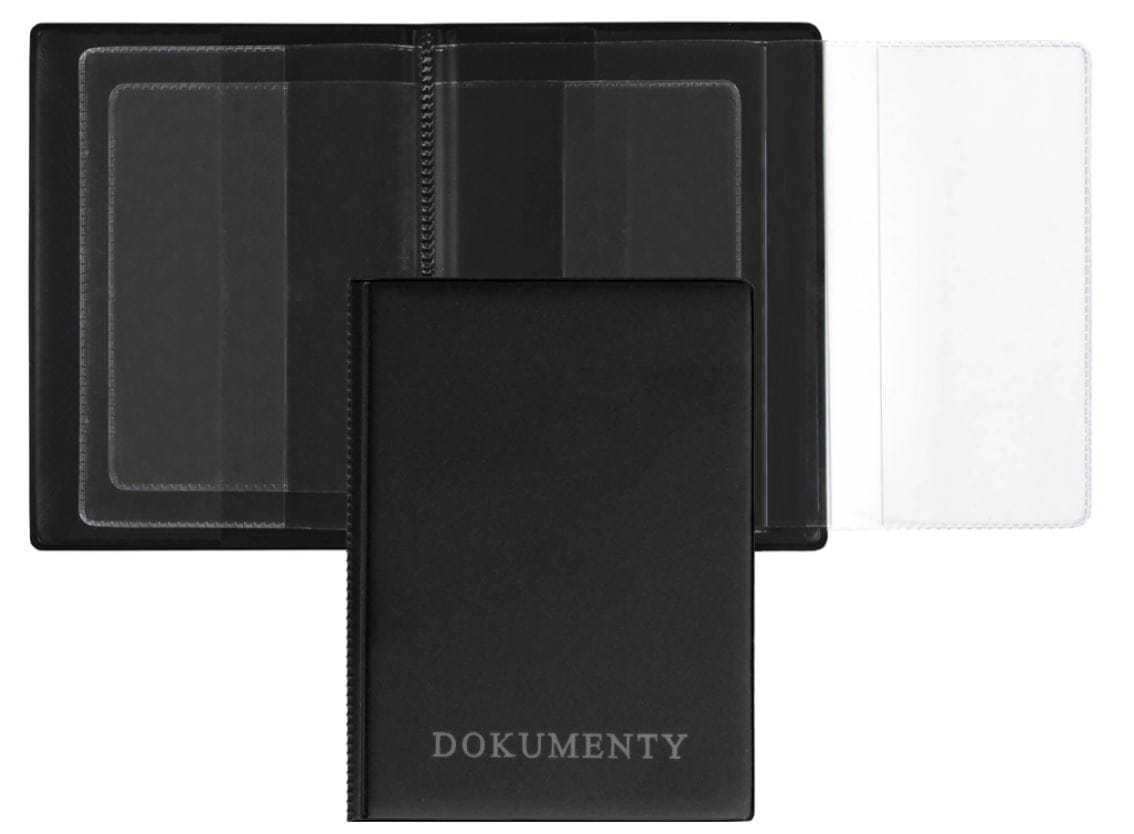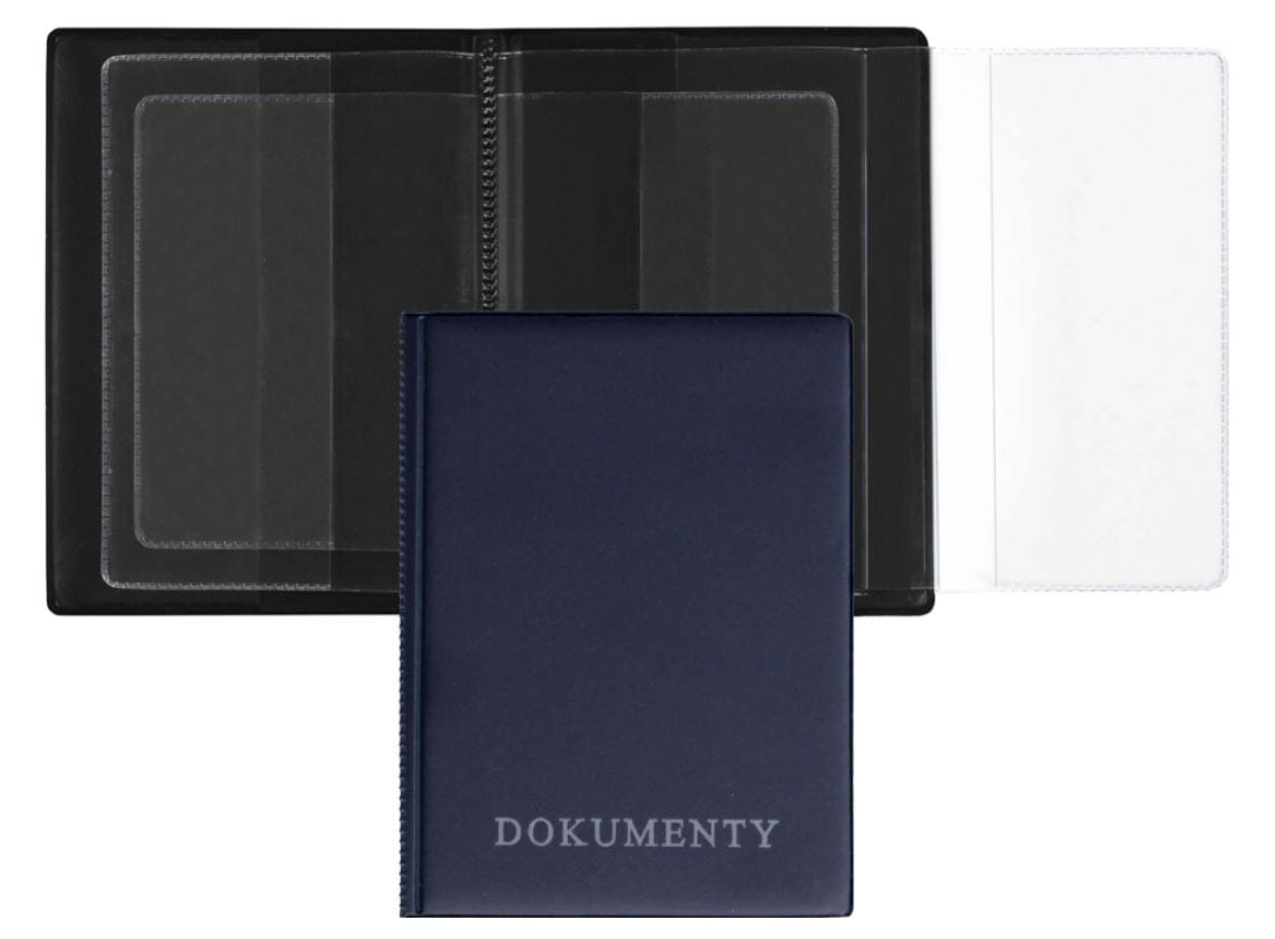 Okładka na dokumenty z dowodem rejestracyjnym PREMIUM OD-06, wykonana z folii PVC z serii Premium, posiada kieszenie, które pomieszczą dowód osobisty, prawo jazdy, dowód rejestracyjny i inne potrzebne dokumenty, czarna lub granatowa
