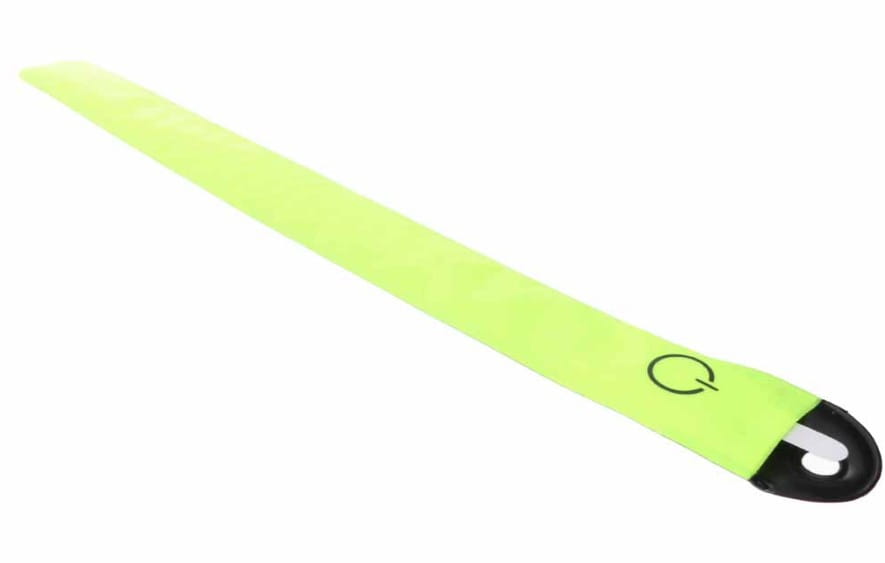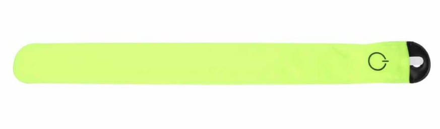 Jasnożółta odblaskowa reklamowa taśma z LED Helene K99.4469.10. Podświetlana w całości. Oferuje trzy tryby świecenia: przerywany szybki, przerywany i ciągły. Oświetlenie LED zasilane jest 1 szt. baterii litowej 3 V typu CR2032, którą bardzo łatwo wymieni
