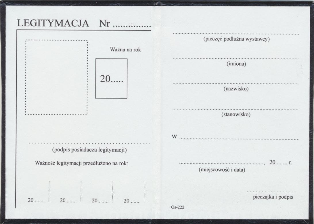 Os-222 Legitymacja pracownicza,