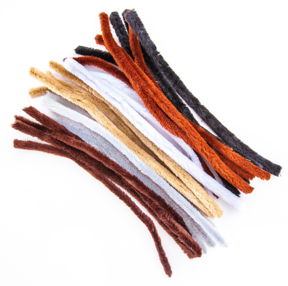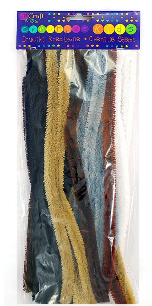 Grube, puszyste druciki kreatywne KSDR-012 w naturalnych kolorach przypominających sierść zwierząt, Ilość w opakowaniu 24 sztuki, rozmiar 1,5 cm x 30 cm