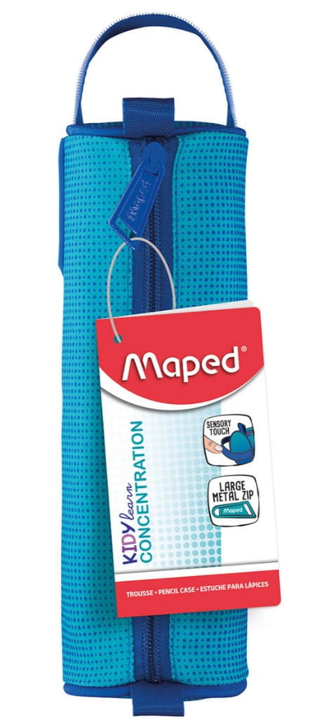 Piórnik sensoryczny Kidy Learn Concentration wykonany z poliestru, wymiary: długość 225 mm, średnica 75 mm, uchwyt pokryty miękkim, gumowanym materiałem, metalowy, szeroki suwak gwarantuje łatwe otwieranie.
