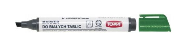 Marker do pisania po tablicach suchościeralnych TO-277 Artline, łatwo ścieralny tusz proszkowy, certyfikaty: ISO 9001, ISO 14001, japońska technologia i produkcja, końcówka ścięta 1-5 mm, kolor zielony.linia pisania 300 m