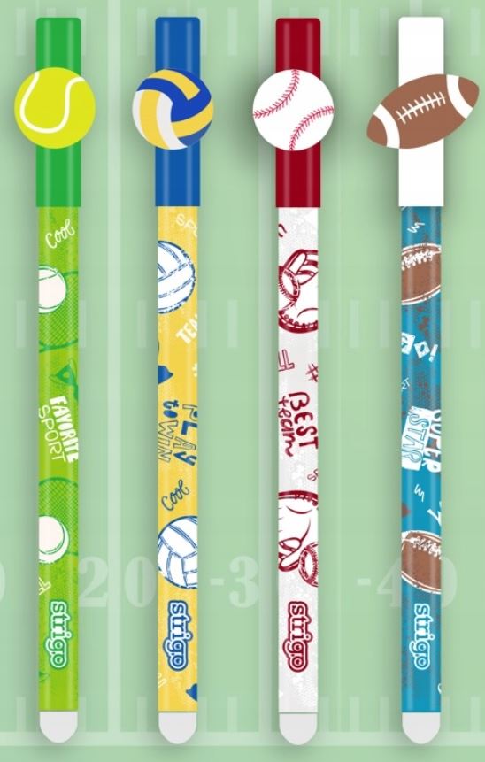 Długopis wymazywalny PETITE Piłki, STRIGO SSC187, wymazywalny, grubość linii 0.5 mm, kolor tuszu niebieski. Kolorowe długopisy wymazywalne z motywami z serii Piłki, dostępne wzory: Tenis, Siatkówka, Baseball, Rugby.