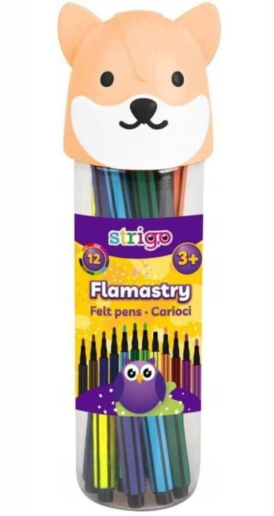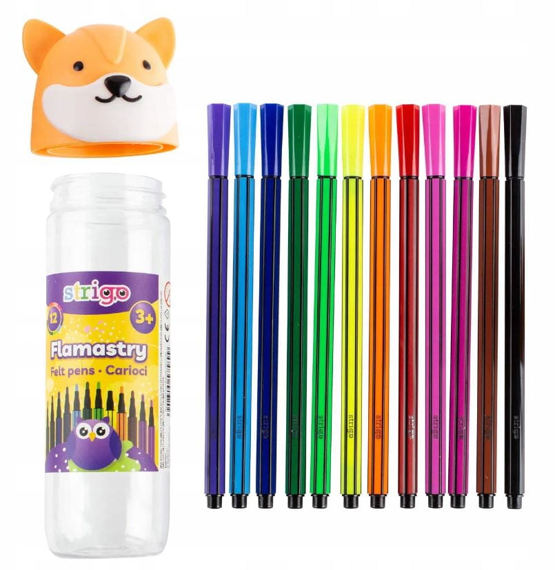 Flamastry Lisek STRIGO SSC287 w 12 żywych intensywnych kolorach, zamknięte w wygodnym okrągłym opakowaniu zakończone wizerunkiem liska. Specjalnie zaprojektowane flamastry sprawdzą się jako niezbędnik do wyprawki szkolnej, dzięki swojemu kształtowi, zost