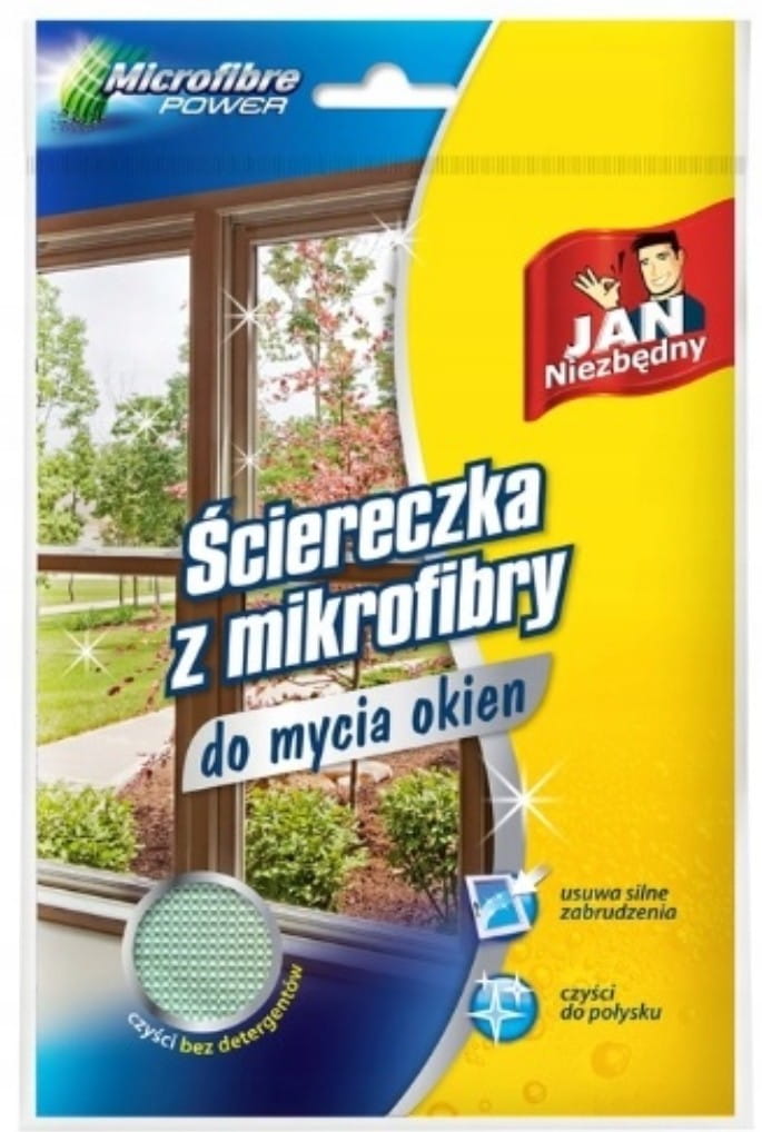 Ściereczka z mikrofibry do mycia okien 1 szt. JAN NIEZBĘDNY, dzięki specjalnej strukturze bardzo skutecznie usuwa nawet silny brud z szyb i framug okiennych, jest bardzo chłonna –idealnie nadaje się do dużych powierzchni. Nie wymaga stosowania detergentów