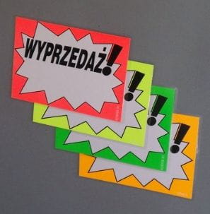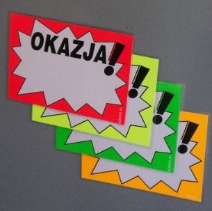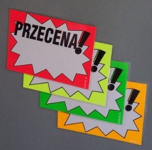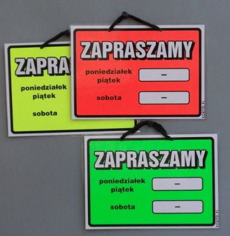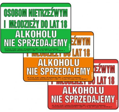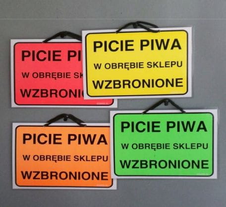 Wywieszka laminowana, wymiary 21,0 x 15,0 cm (A-5), różne wzory: Alkohol szkodzi, Zakaz sprzedaży, Osobo nietrzeźwym ..., Palenie szkodzi, Picie piwa ..., Prosimy nie palić, Właściciel, Zapraszamy, Nowość, Dobra cena, Cena dnia, Super cena, Promocja, Okaz