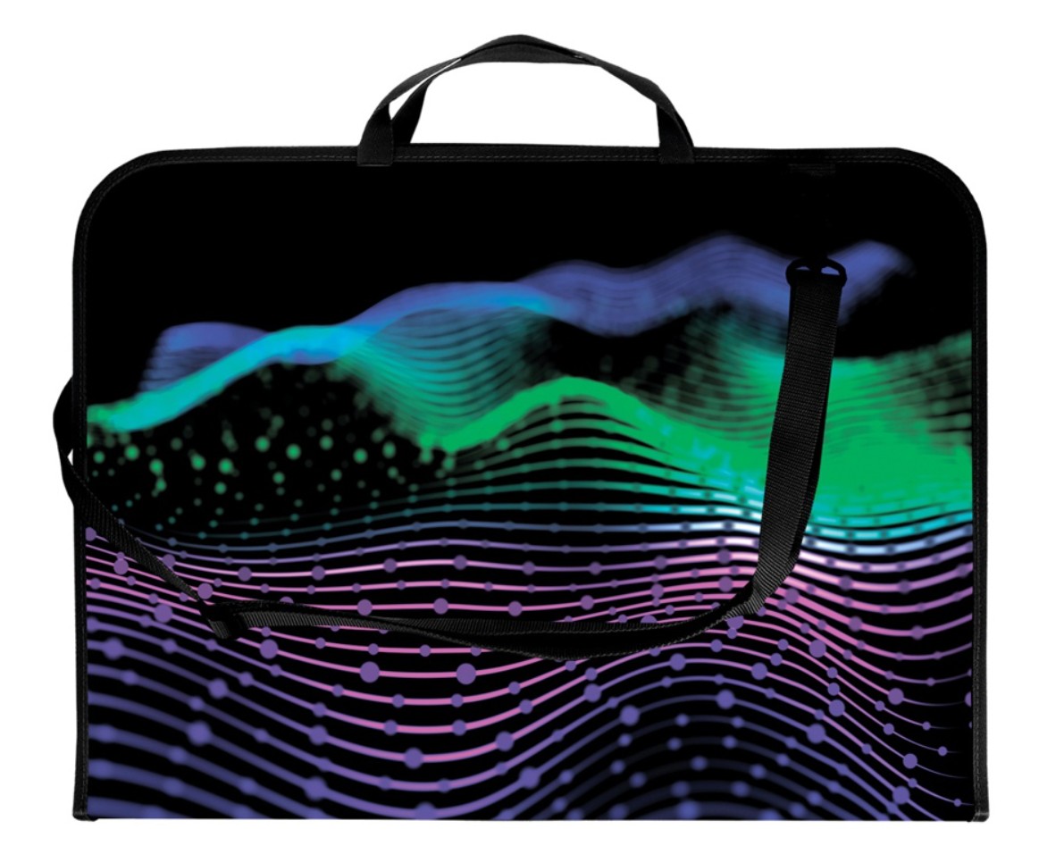 Teczka na rysunki TER-01-14 Aurora, teczka wykonana ze sztywnego tworzywa PP z ozdobnym nadrukiem oraz obszyciem w kotrastowym kolorze wymiary teczki 38x52 cm umożliwiają przechowywanie prac plastycznych w formacie A3 z zapasem miejsca wyposażona w zamk