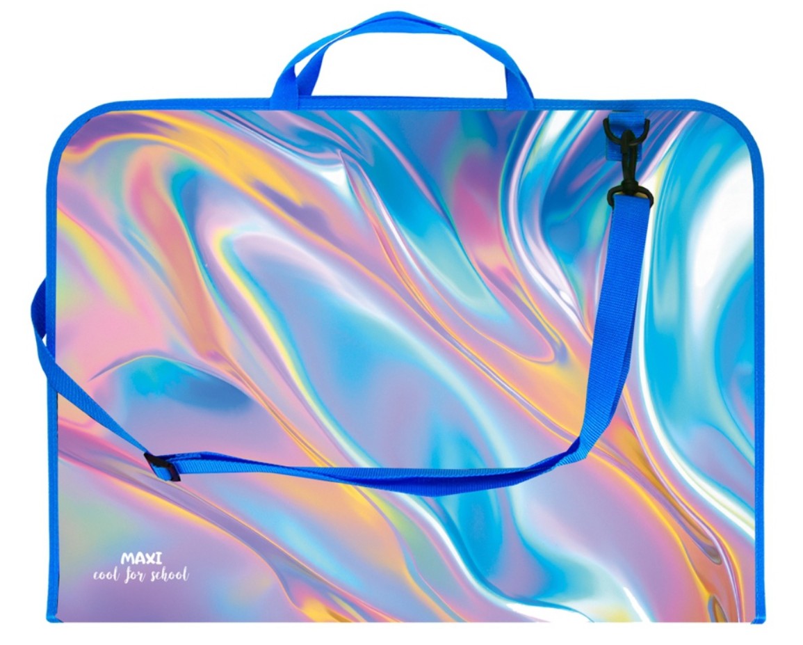 Teczka na rysunki TER-01-15 Holo, teczka wykonana ze sztywnego tworzywa PP z ozdobnym nadrukiem oraz obszyciem w kotrastowym kolorze wymiary teczki 38x52 cm umożliwiają przechowywanie prac plastycznych w formacie A3 z zapasem miejsca wyposażona w zamk
