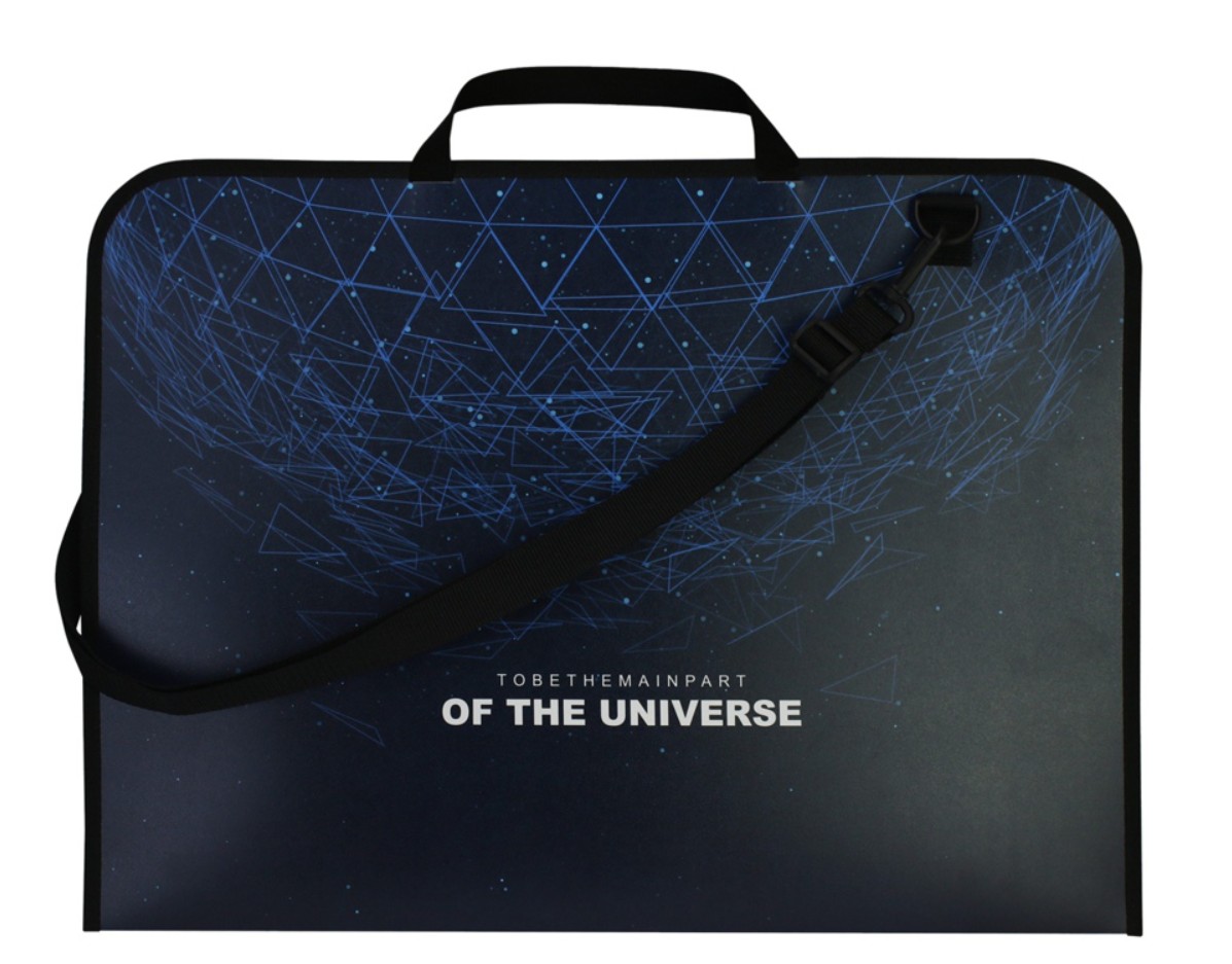 Teczka na rysunki TER-01-13 Universe, teczka wykonana ze sztywnego tworzywa PP z ozdobnym nadrukiem oraz obszyciem w kotrastowym kolorze wymiary teczki 38x52 cm umożliwiają przechowywanie prac plastycznych w formacie A3 z zapasem miejsca wyposażona w zamk