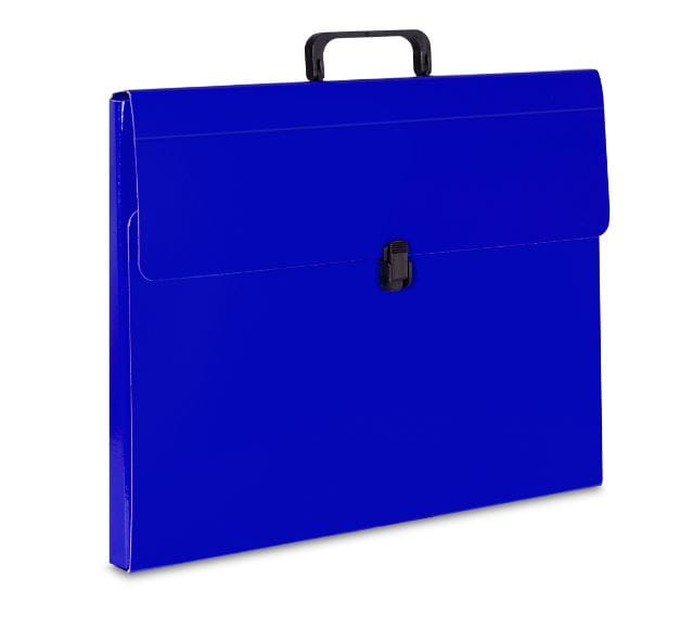 Teczka do rysunków B3 309/03, niebieska, wykonana z twrdej tektury o grubości 1 mm, dwustronnie barwiona, powlekana folią polipropylenową, do formatu B3, szerokość grzbietu do 30 mm, zamykana na zamek z tworzywa, wyposażona w rączkę.