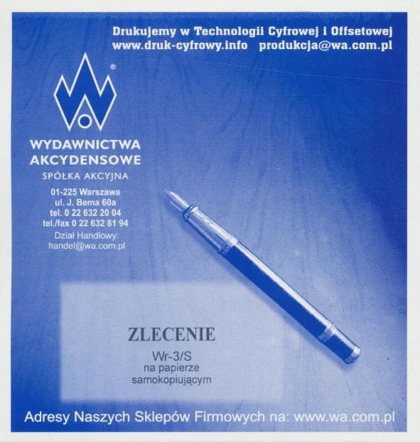 Wr-3/s Zlecenie, format 2/3A5, blok 80 kartek, druk jednostronny, papier samokopiujący