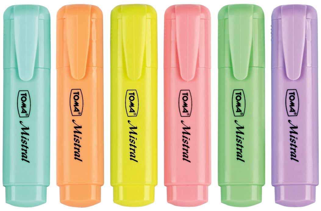 Zakreślacz Mistral TO-034, atrakcyjne, żywe kolory, szerokość końcówki 1-5 mm, tusz odporny na działanie wody i światła, do stosowania na różnych rodzajach papieru. TO-334